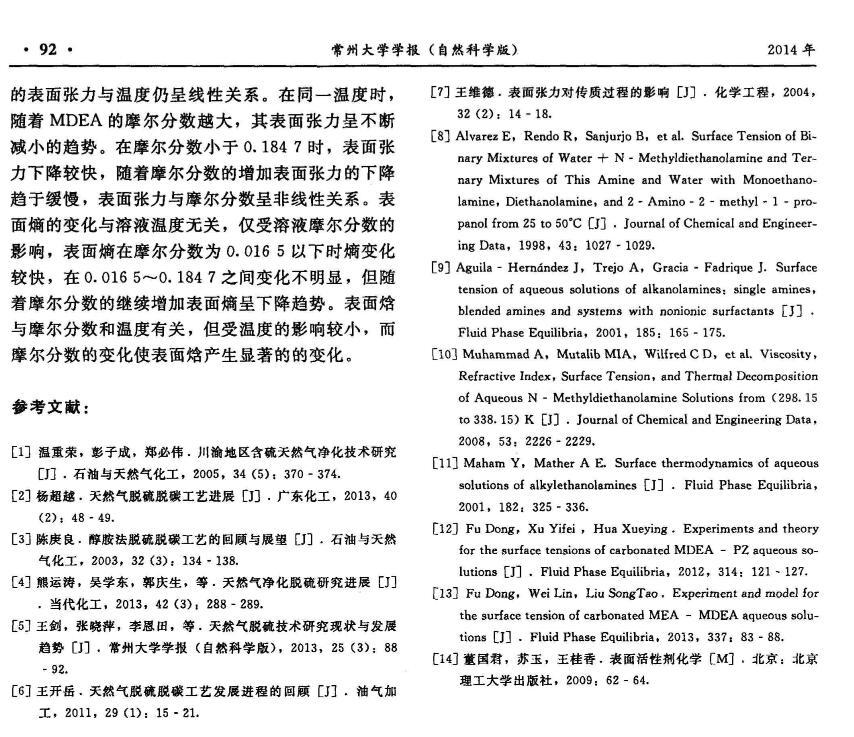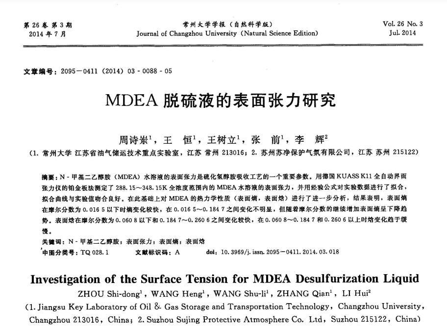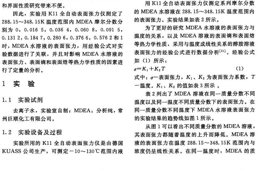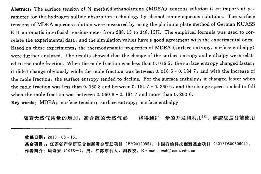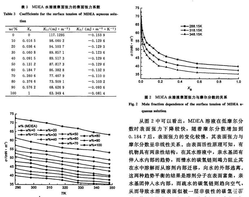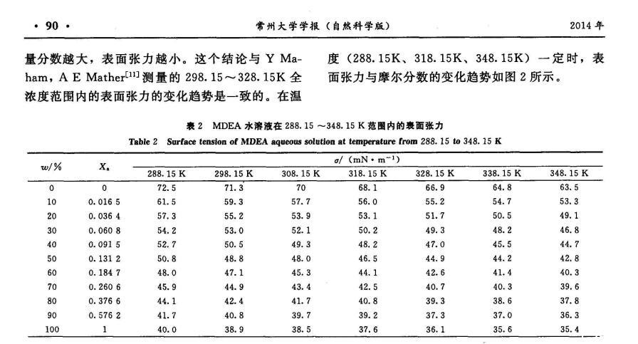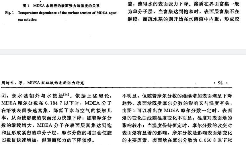 MDEA脫硫液的表面張力研究