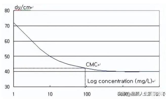 而電鍍液的潤濕性是可由液體的表面張力來做控制及分析,由表面張力的理論得知,若電鍍液的表面張力愈小,表示電鍍液的內(nèi)聚力愈小、愈容易滲入細(xì)小的縫隙裡面、也愈容易於被鍍物表面潤濕讓金屬離子鍍上去。因此為了使電鍍液的表面張力降低或是增加電鍍後的品質(zhì),通常於電鍍液中會(huì)加入有機(jī)添加劑(光澤劑,結(jié)構(gòu)改良劑,潤濕劑..等),其中潤濕劑即是在使鍍液表面張力降低的作用。然而當(dāng)這類界面活性劑添加超過CMC點(diǎn)後,表面張力即不再改變(如下圖)。此時(shí)過量的添加不但沒達(dá)到效果反而增加了生產(chǎn)成本。因此CMC點(diǎn)便可作為電鍍液的監(jiān)控標(biāo)準(zhǔn)值,來決定何時(shí)添加及添加的量。