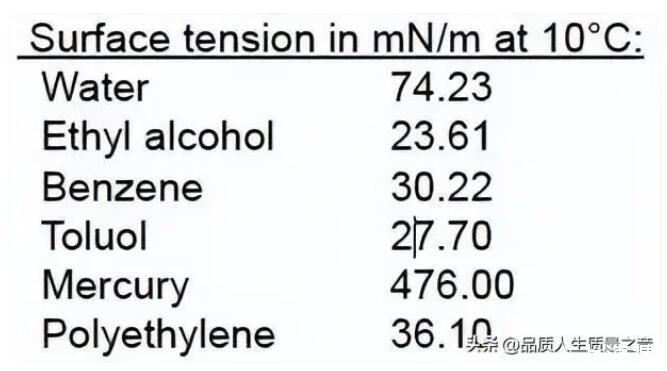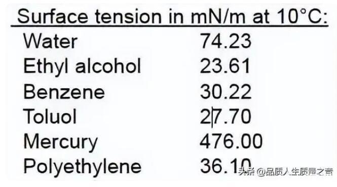 比如下面表格在10攝氏度時(shí)不同液體的表面張力差異很大