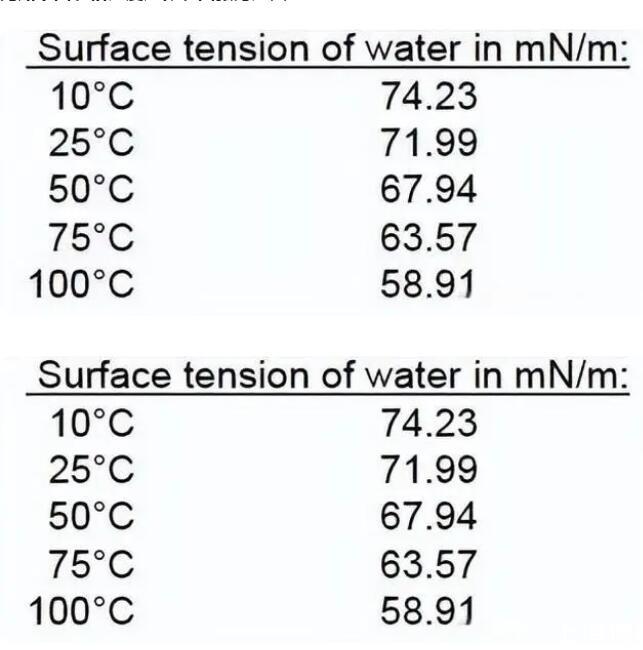 比如下面表格溫度越低表面張力越大
